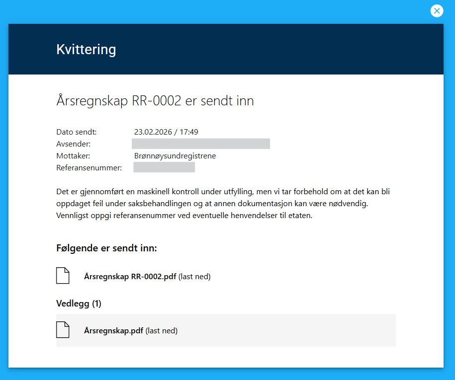 Du kan bekrefte innsendingen i Altinn: